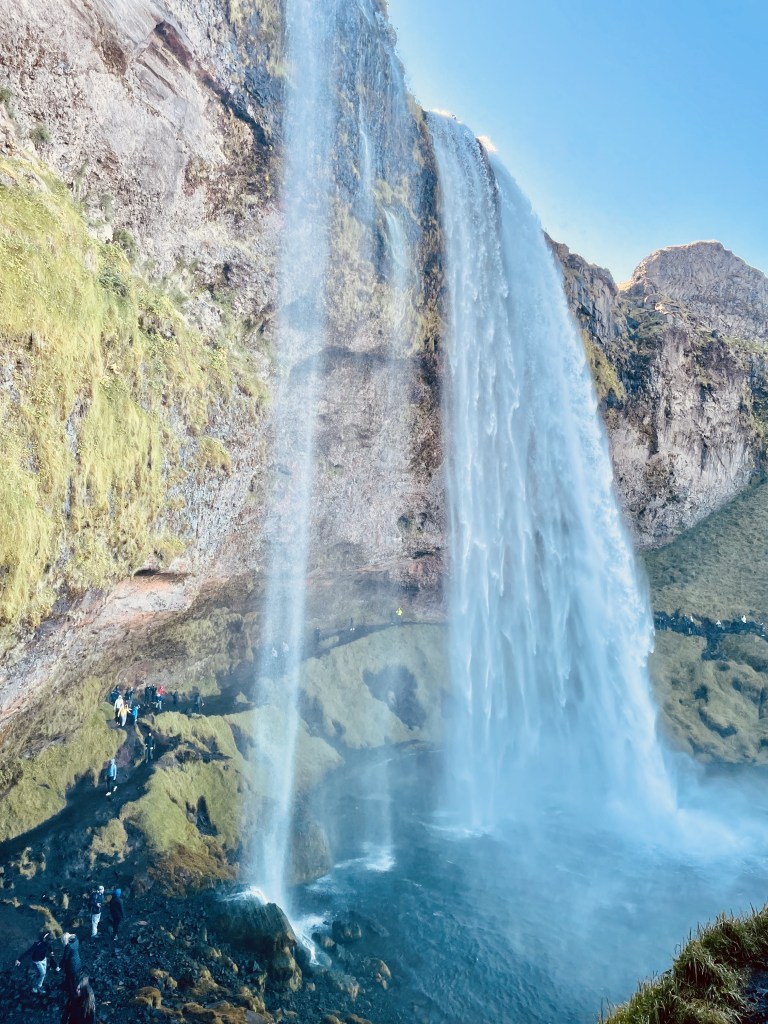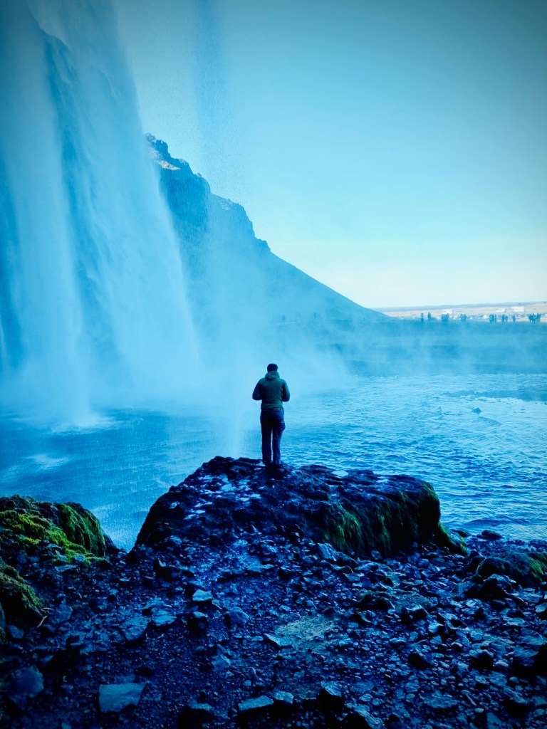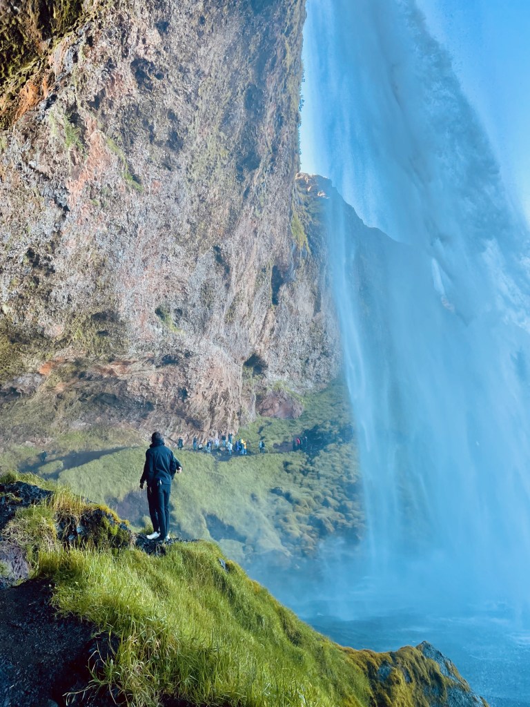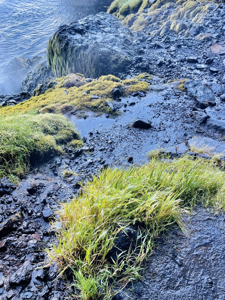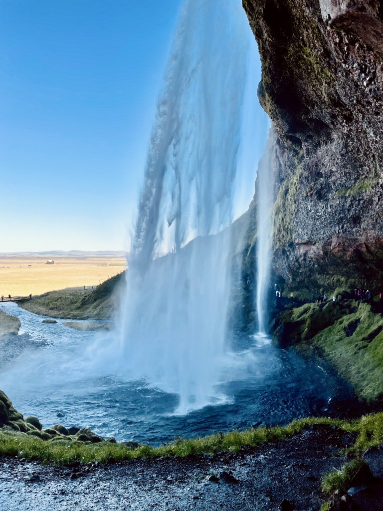 Das Tolle am Seljalandsfoss ist, dass man ihn von hinten einmal umrunden kann. Es ist eine ziemlich feucht-fröhliche Angelegenheit und sehr lustig. Und beeindruckend. Und die Farben!