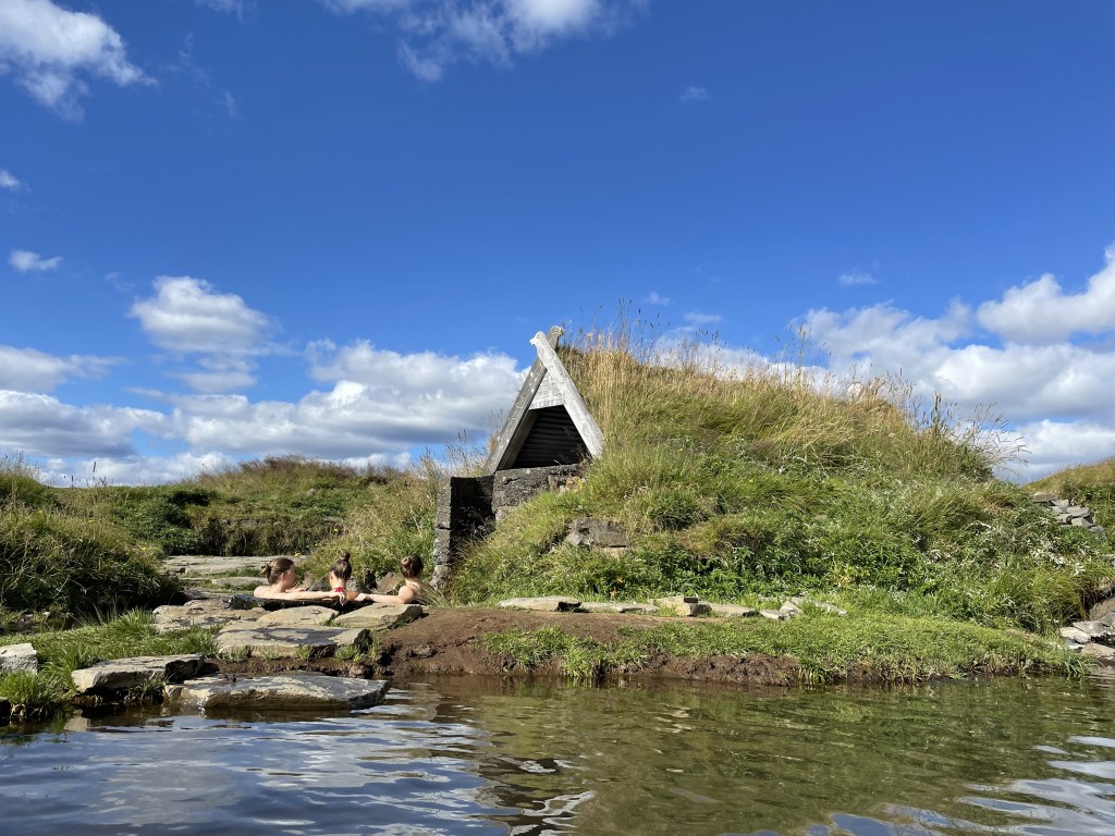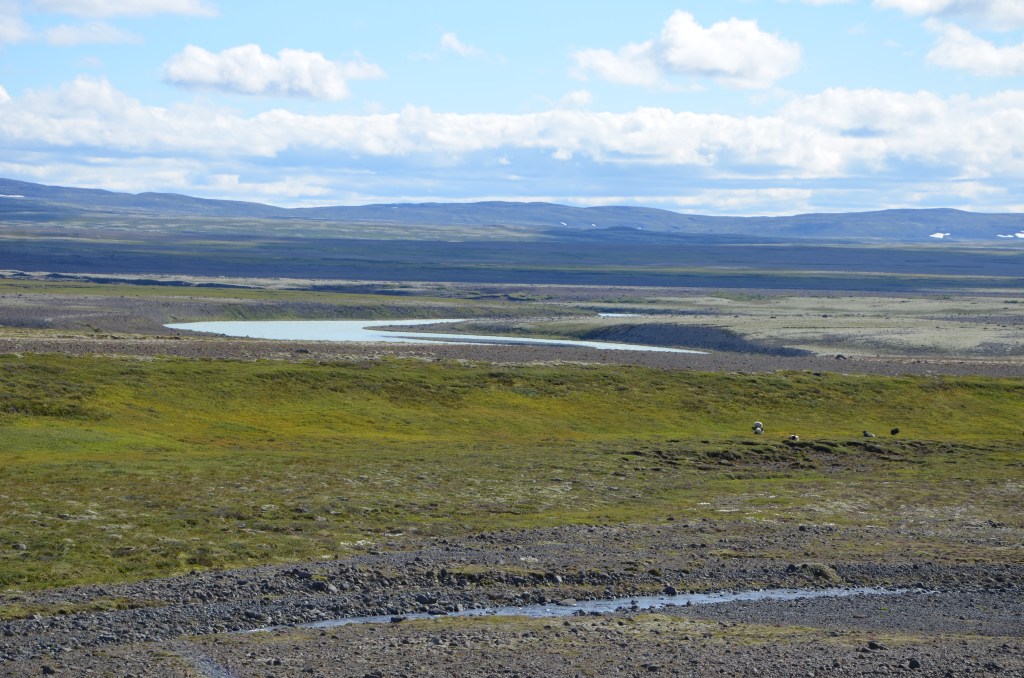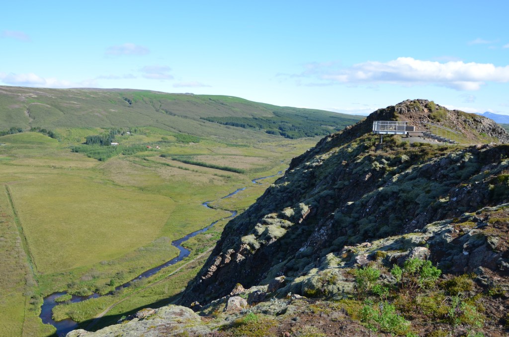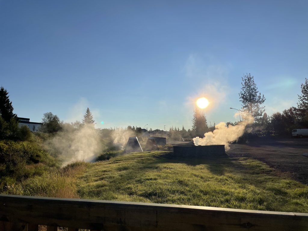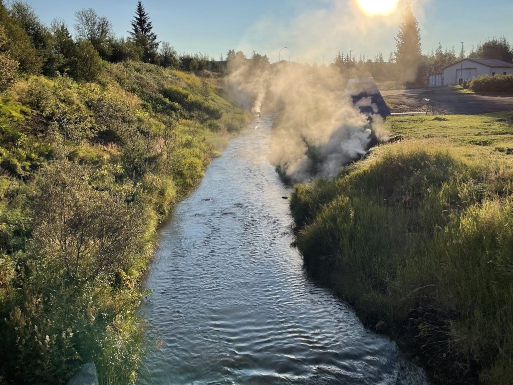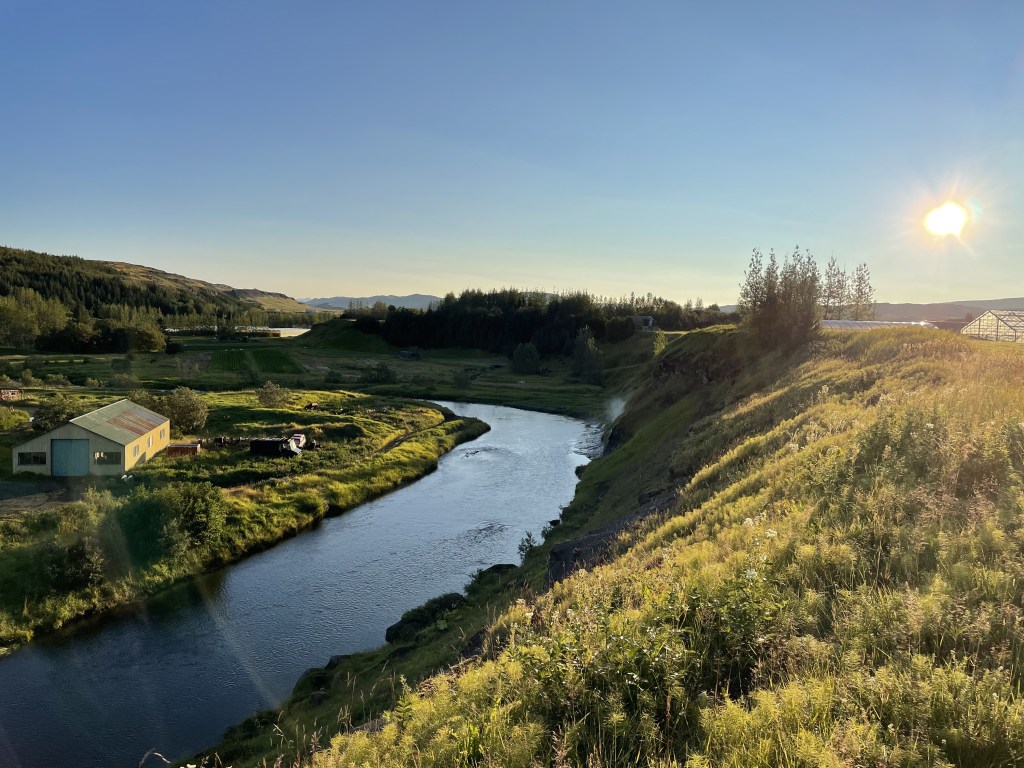Die ersten zwei Nächte haben wir im Guesthouse Flúðir verbracht. Direkt gegenüber vom Appartement gab es den Fluss und einen herrlichen Ausblick darauf. Der Name Flúðir kommt von den Stromschnellen, die es dort neben reichlich Geothermie gibt. Rund um Flúðir dampft und qualmt es schon mal ordentlich, und in der Region werden sehr viele Treibhäuser geothermisch beheizt und Tomaten und Champignons angebaut.