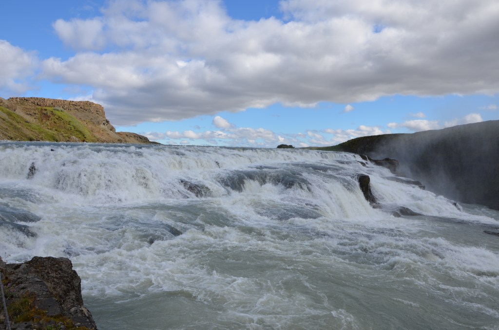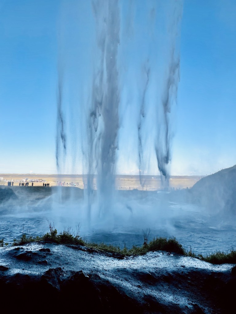 Nach der ersten Nacht in Flúðir standen gleich in der Nähe ein paar Klassiker auf dem Programm, die auch zum „Golden Circle“ gehören. Station 1: Der Große Geysir, der seinerzeit auch namensgebend für die restlichen Geysire war. Leider ist er immer fauler geworden mit den Jahren. Sein direkter Nachbar Strokkur hingegen ist mit 5-10 Minuten Fontänenabstand aktuell zuverlässig wie ein Uhrwerk. Dementsprechend oft konnten wir versuchen, ihn im richtigen Moment – nur ein Bruchteil von Sekunden – mit der Kamera zu erwischen. Nach einem schnellen und hohen Blubb ist wieder mindestens 5 Minuten Ruhe.