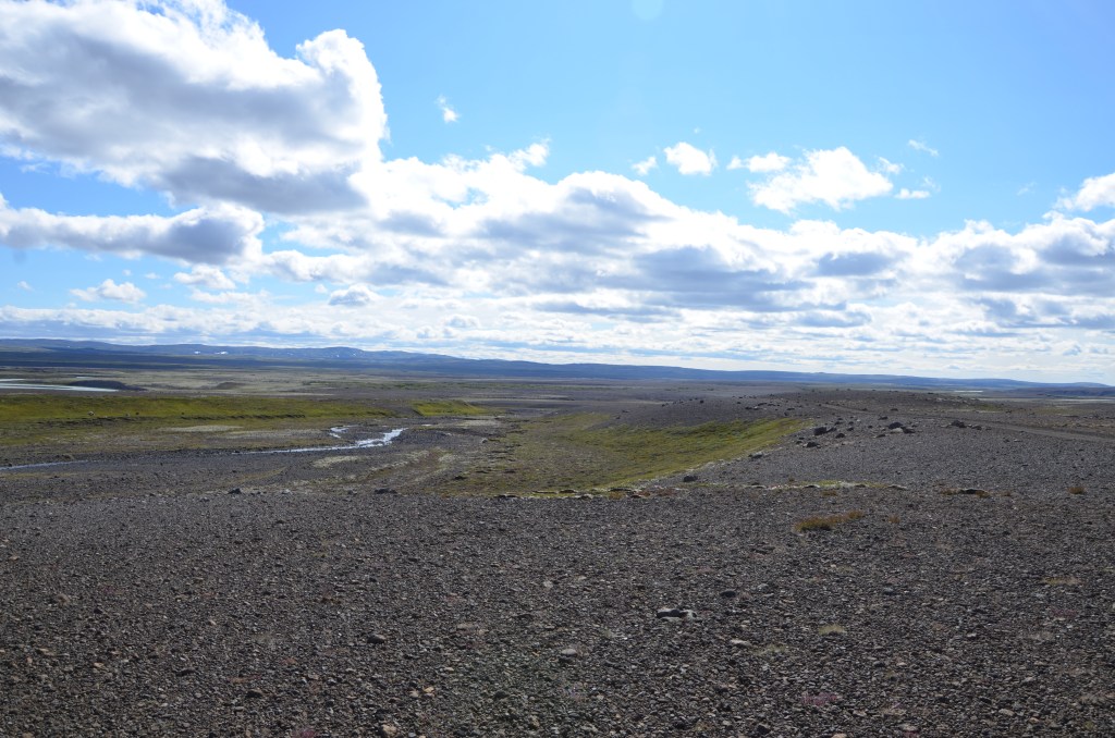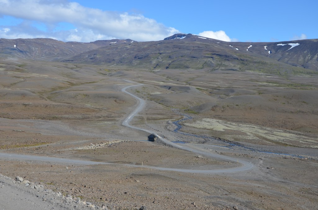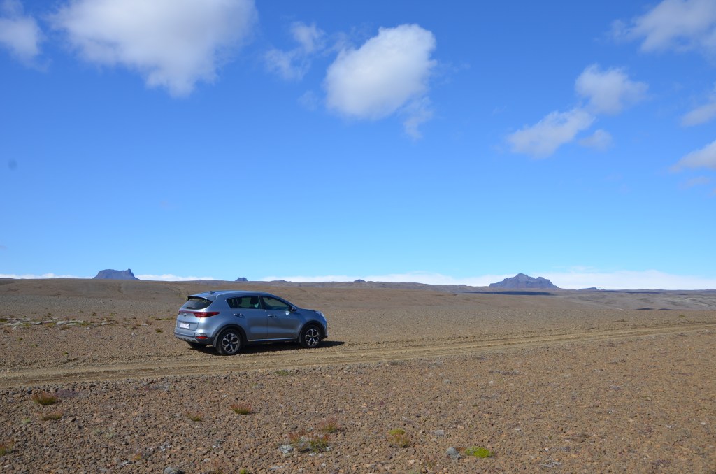 Wenn man die Straße am Gullfoss noch 10 km weiter fährt, endet der Asphalt. Mit einem Allradauto kann man dann weiter Richtung Hochland fahren. Einmal abgebogen, und man steht mutterseelenallein in der schönsten Mondlandschaft.