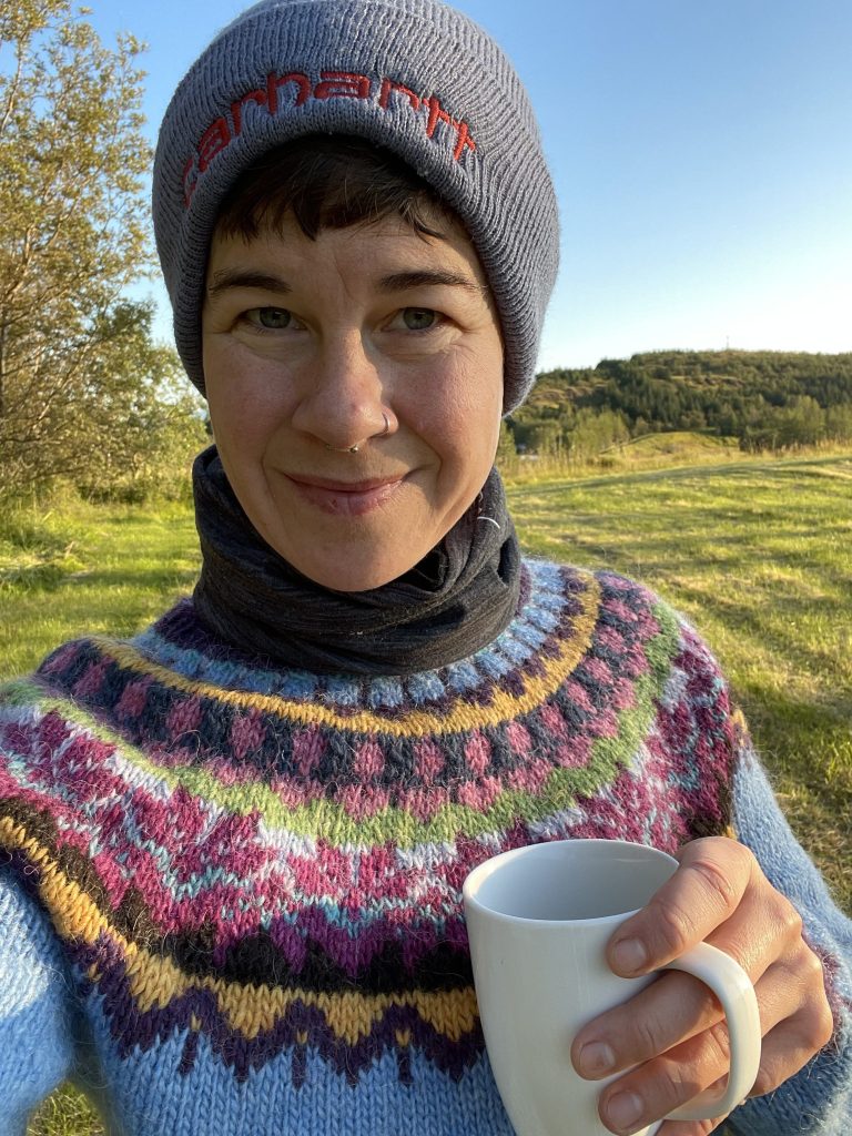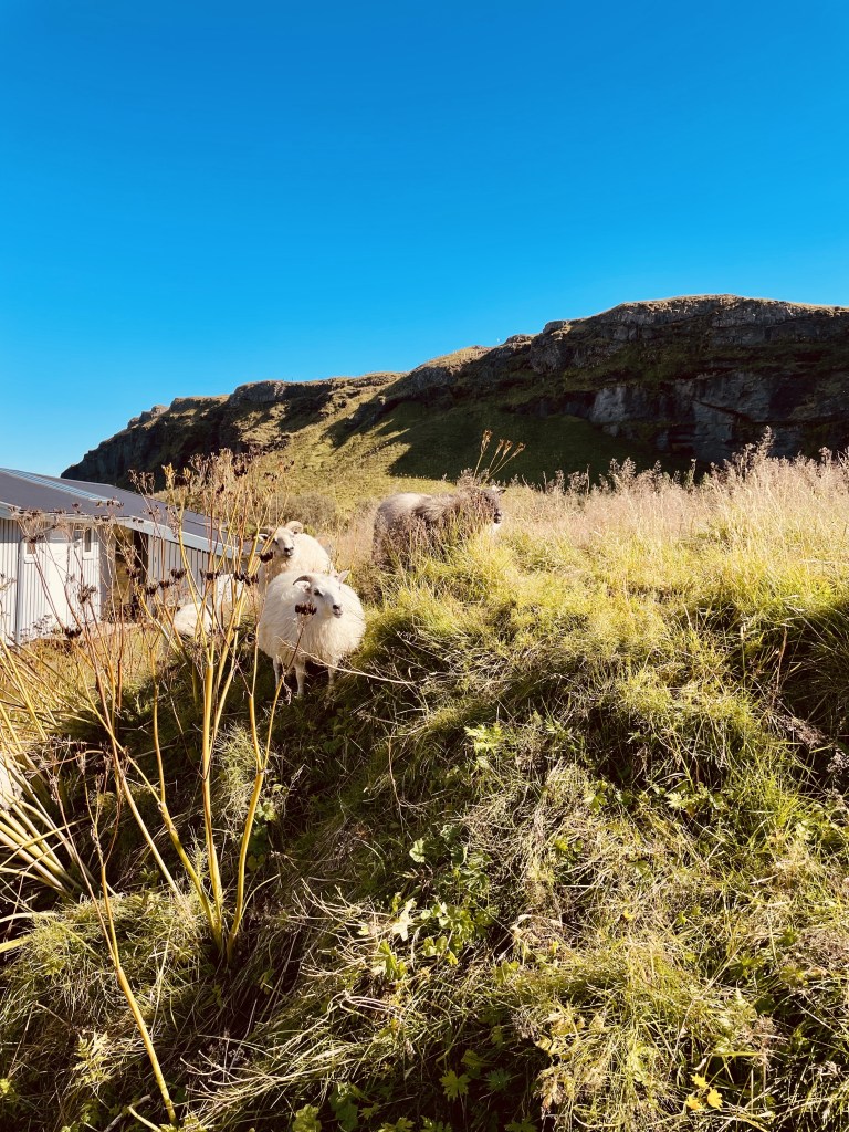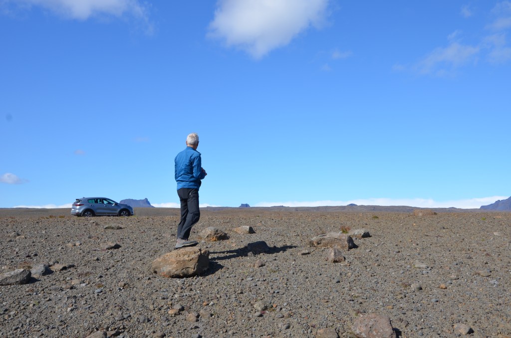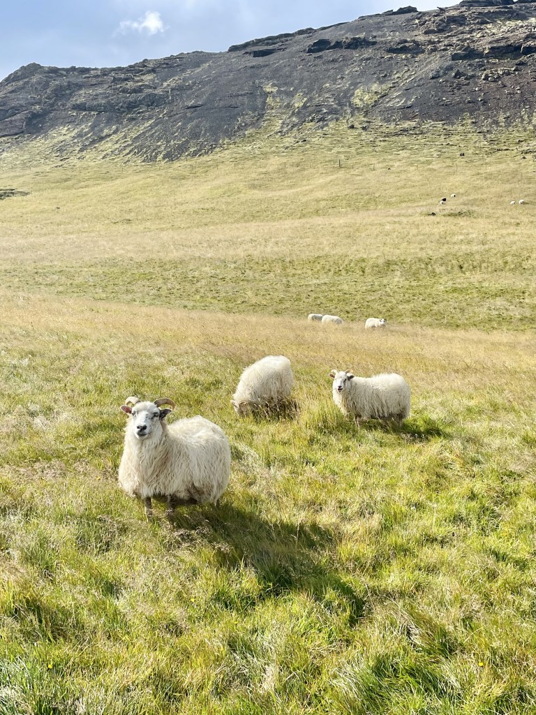 Harte Fakten: Abflug in Hamburg eine Stunde zu spät (gegen 14 Uhr), Ankunft in Reykjavik 3 Stunden später (von denen 2 geschenkt werden durch die Zeitverschiebung), Mietauto von Hertz, Höchstgeschwindigkeit 90 km/h, erster Halt in Selfoss, Plötulopi (ungesponnene Wolle vom Islandschaf zum Stricken) im Supermarkt. Und herrliches Wetter.