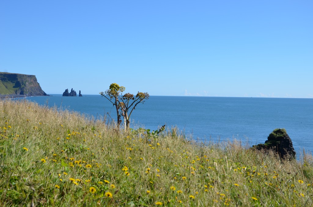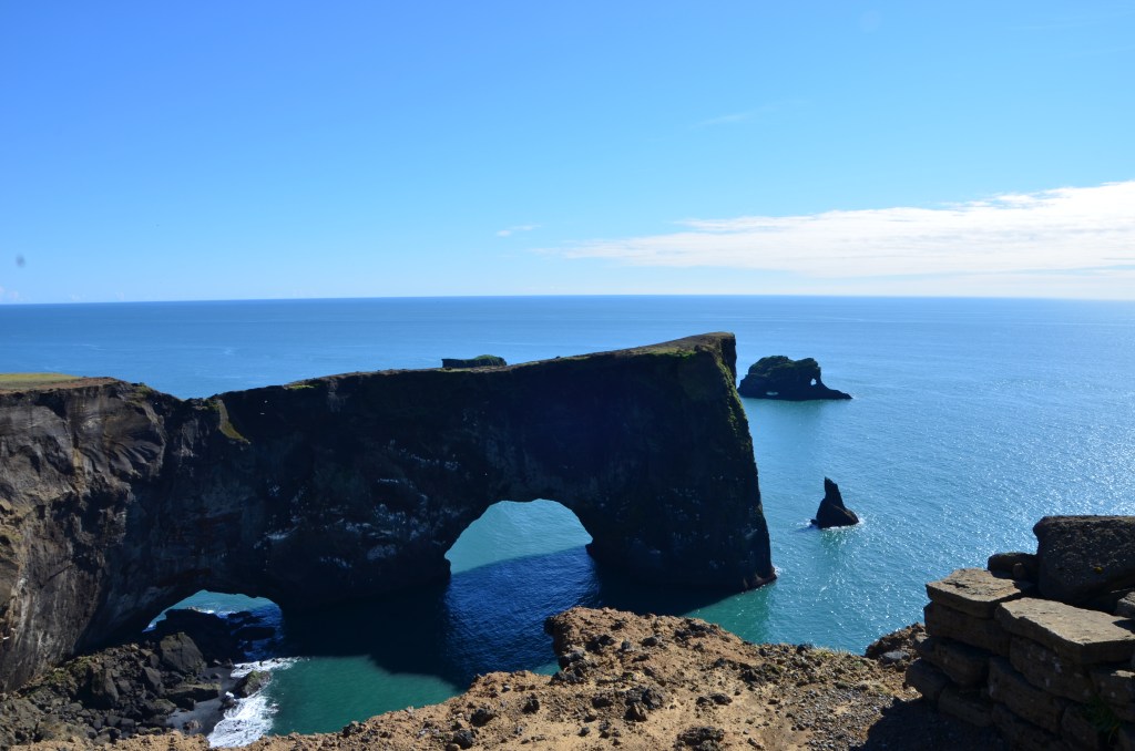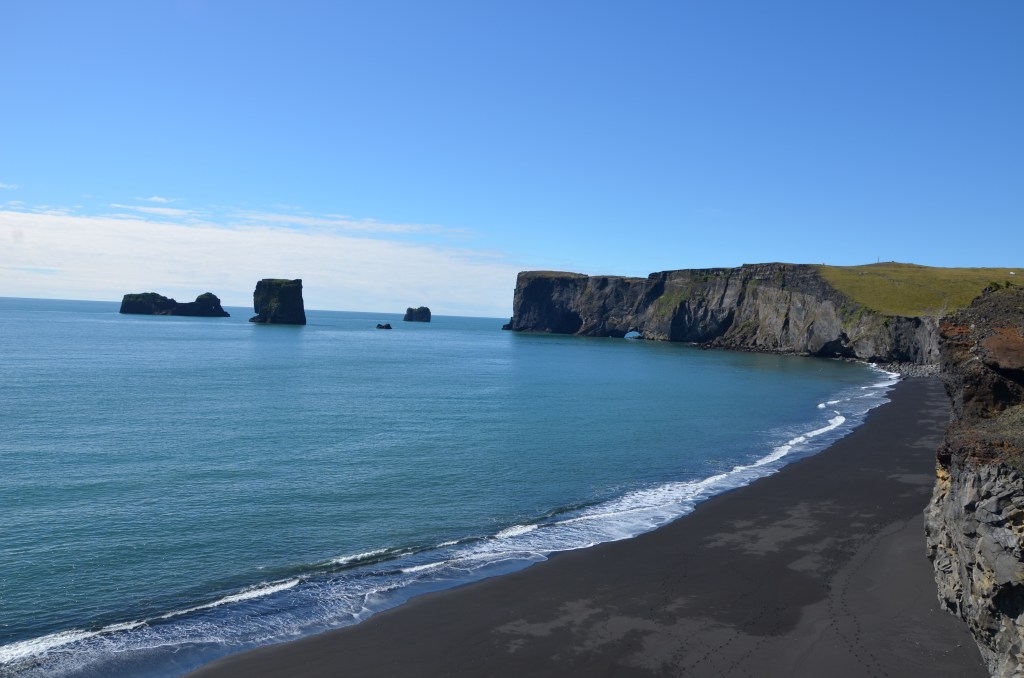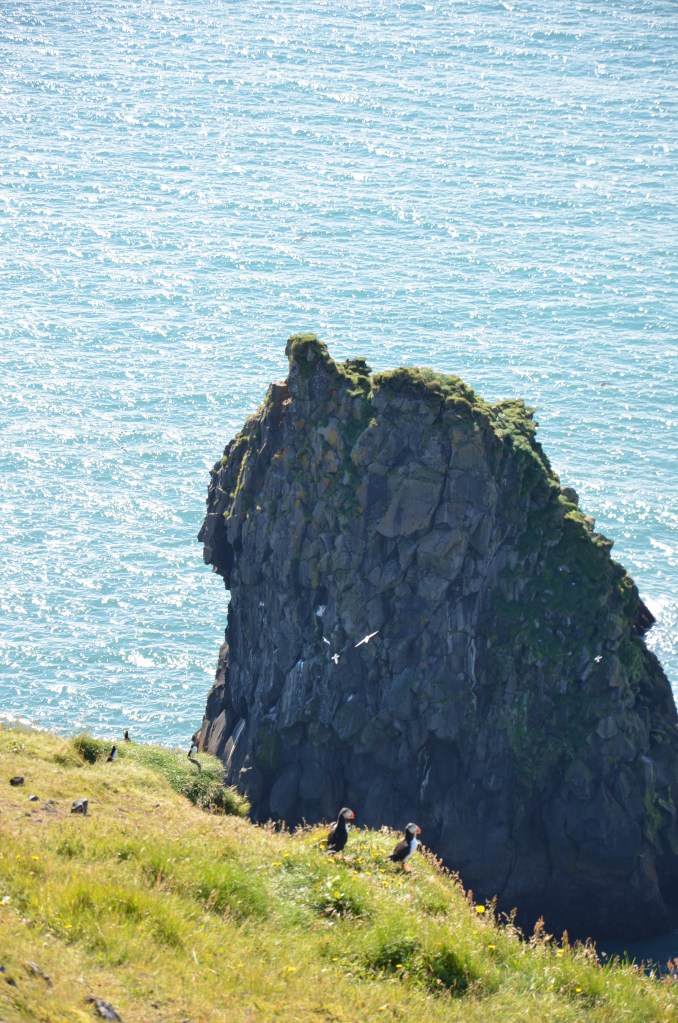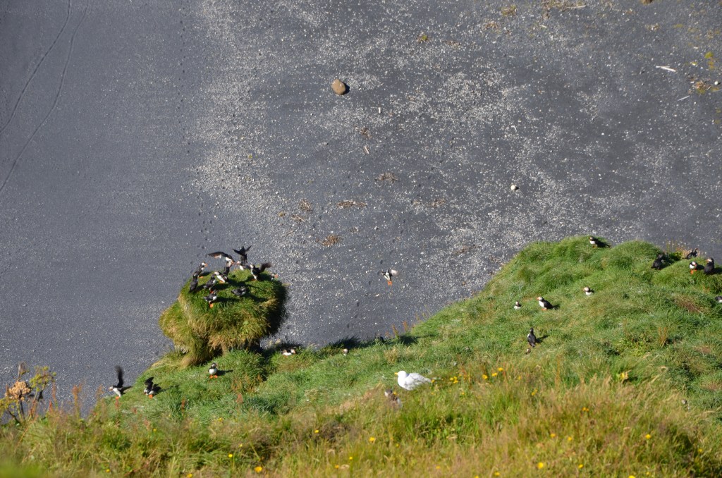 Dyrhólaey heißt so viel wie „Türloch-Insel“. Das Cap ist vulkanischen Ursprunges. Der Strand ist pechschwarz. Unter anderem dort und auf den Westmänner-Inseln gibt es die größeren Kolonien von Papageitauchern.