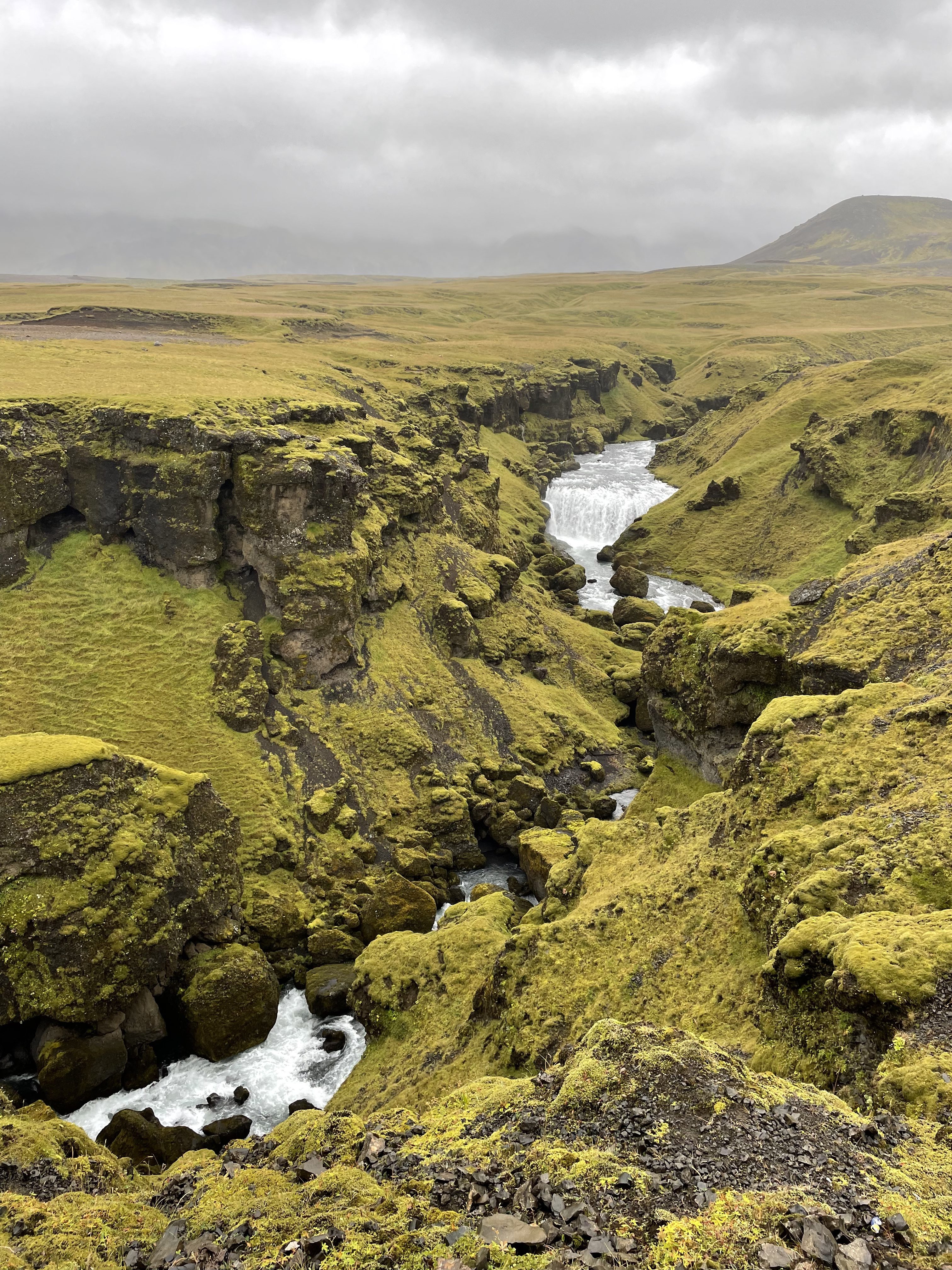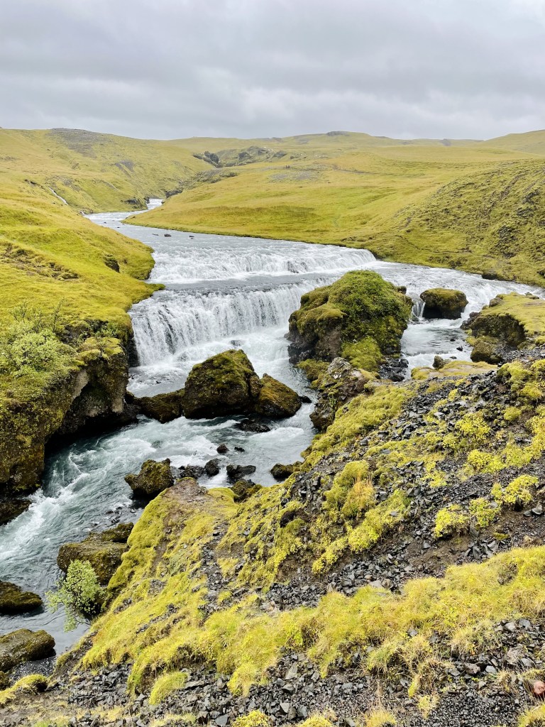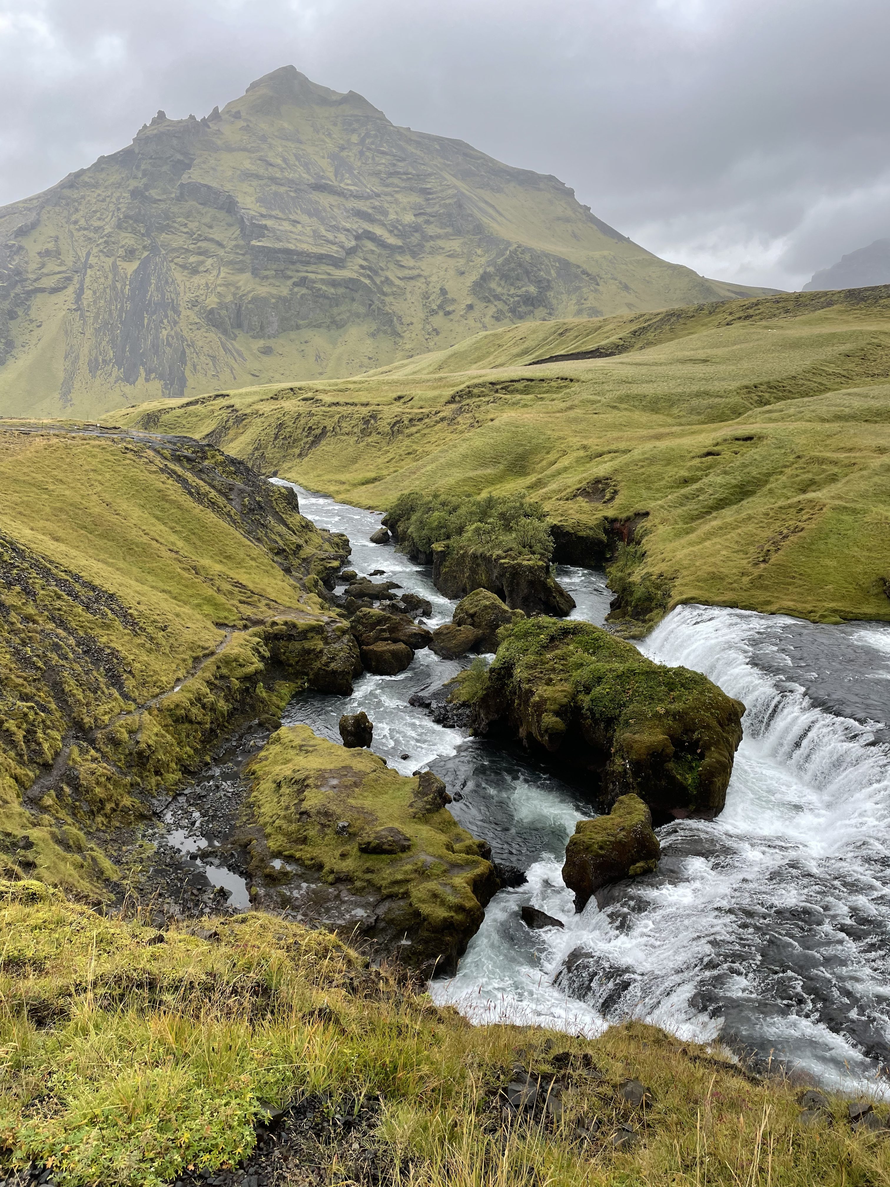 Ein Tag mit sehr isländischem Wetter – Regen und Sturm. Gleich am Skógafoss führt der Wanderweg Laugavegur auf die Hochebene und wird flankiert von weiteren malerischen Wasserfällen.