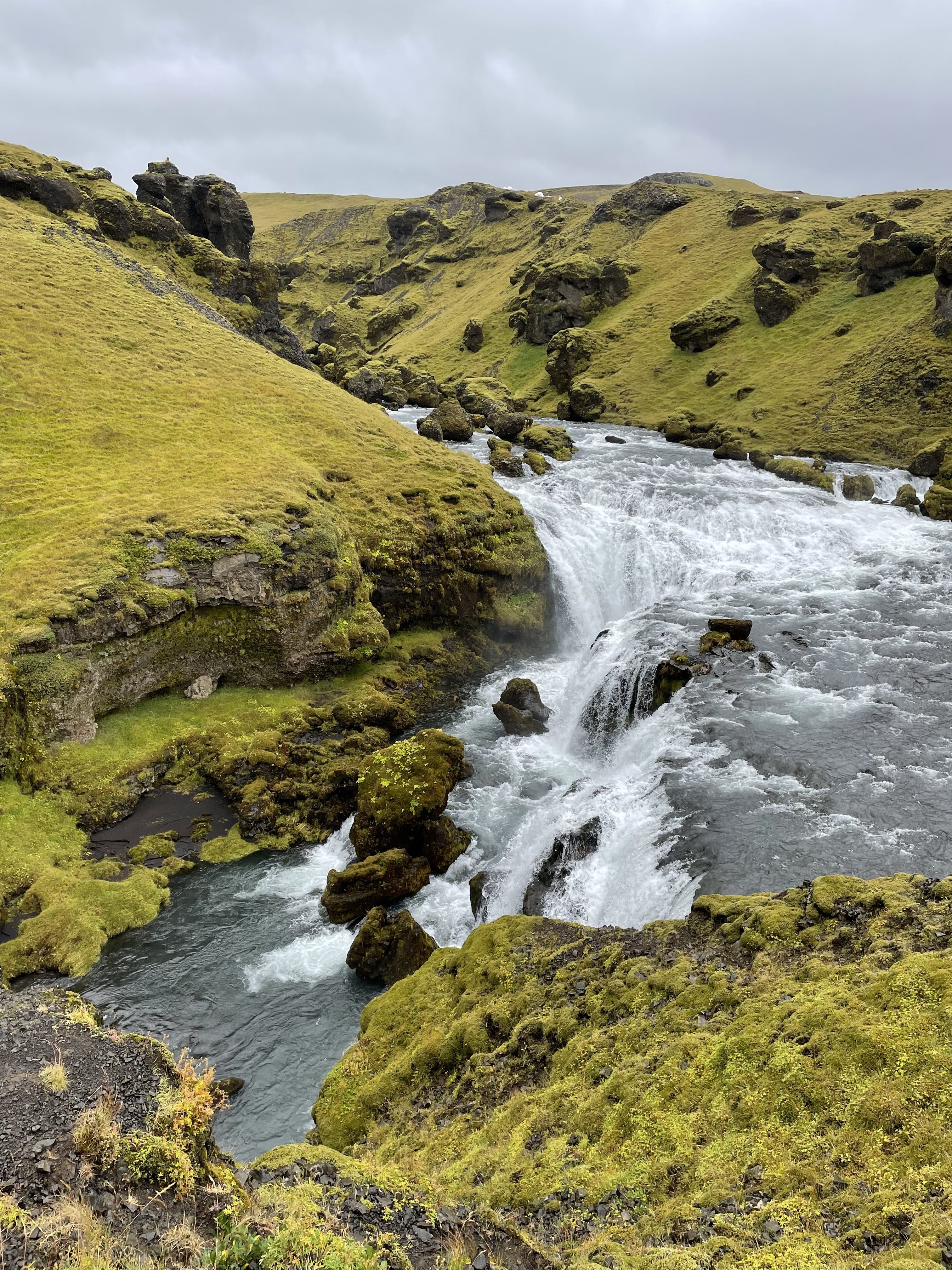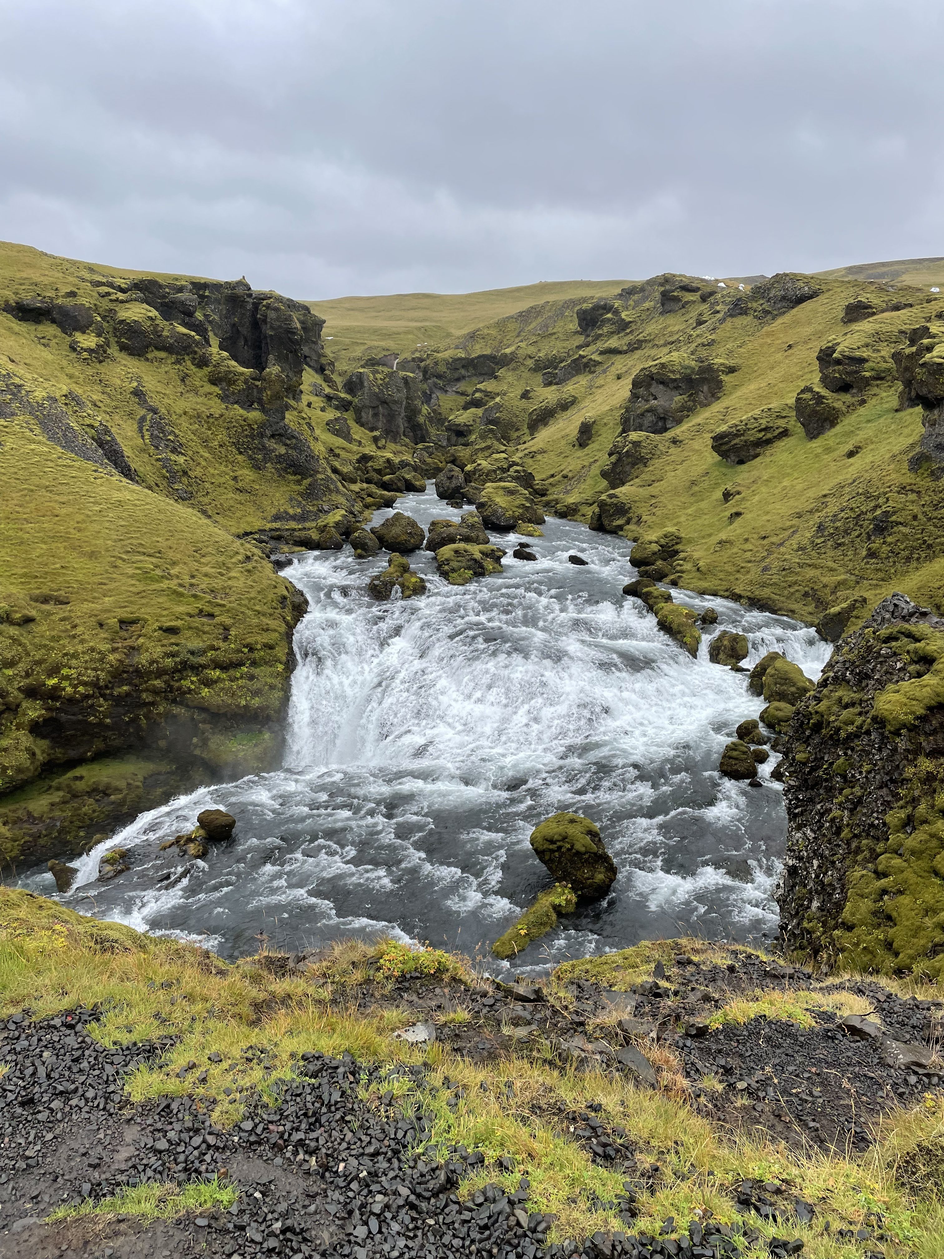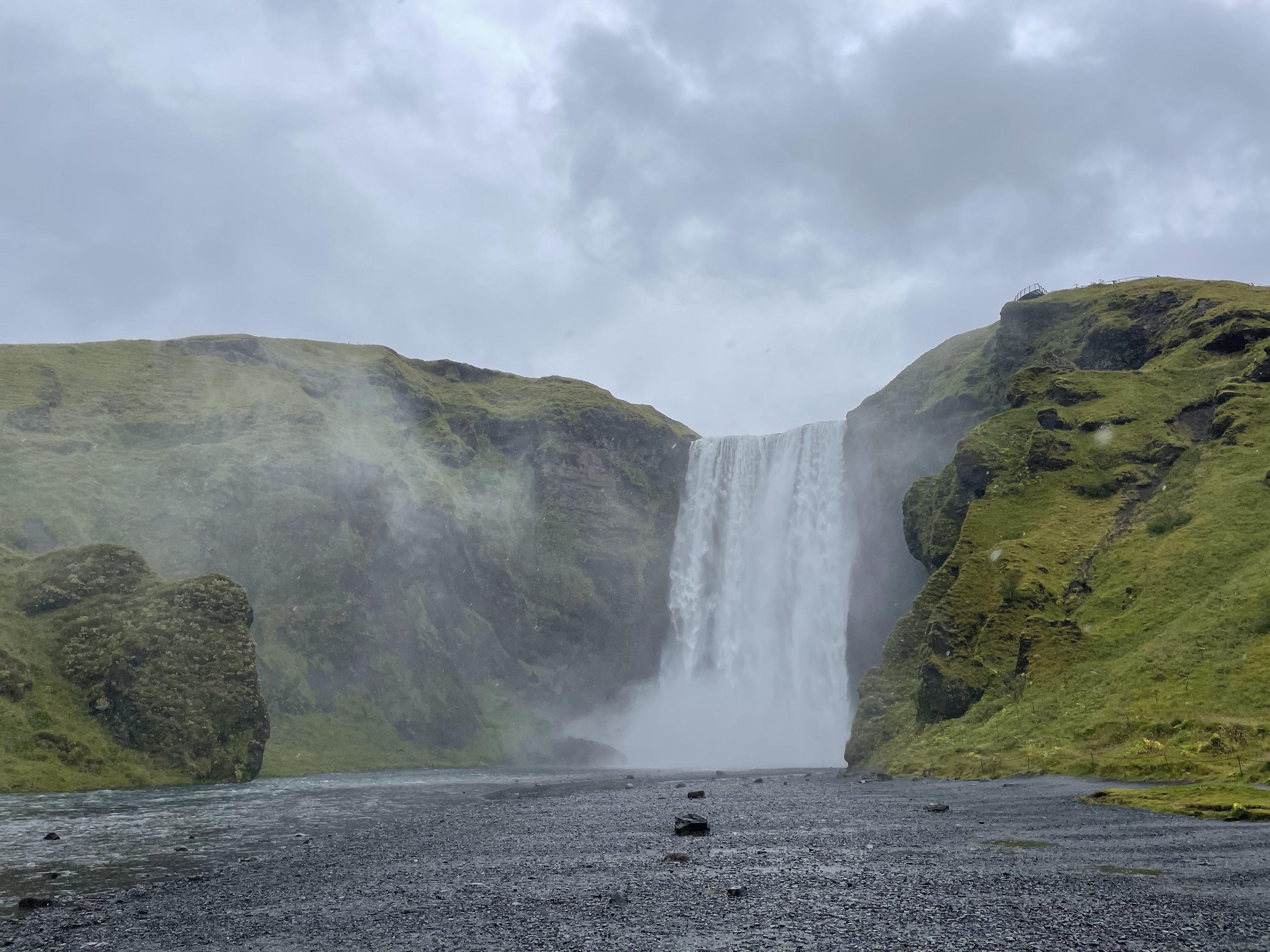 Ein Tag mit sehr isländischem Wetter – Regen und Sturm. Gleich am Skógafoss führt der Wanderweg Laugavegur auf die Hochebene und wird flankiert von weiteren malerischen Wasserfällen.