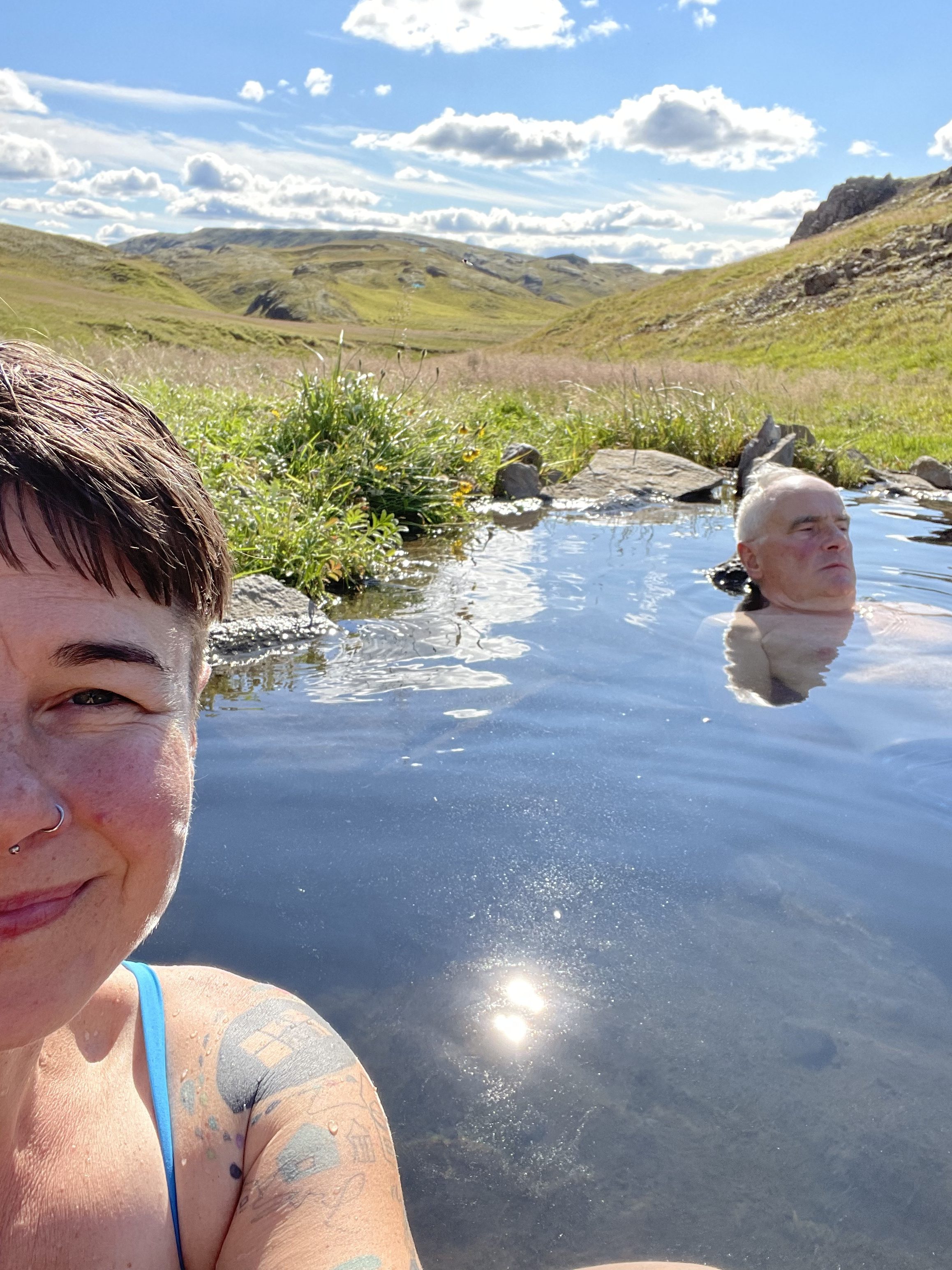 Ein höchst glücklicher Zufallsfund! Das Wasser wird von einer heißen Quelle gespeist und hat allerschönste Badewannentemperatur. Man darf nur 1,5 Stunden bleiben, und die gehen wie im Flug vorbei.