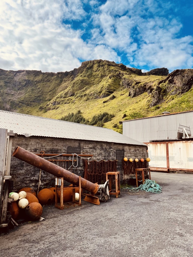 Vík í Mýrdal („Bucht am sumpfigen Tal“) liegt nicht weit vom Cap Dyrhólaey entfernt und ist der südlichste Ort des Festlandes und mit 601 Einwohnern (2022) auch einer der größten der Region. Die Altstadt besteht aus gefühlten 10 kleinen Häusern und dieser interessanten alten Industriezone. Einen Hafen hat Vík übrigens nicht.