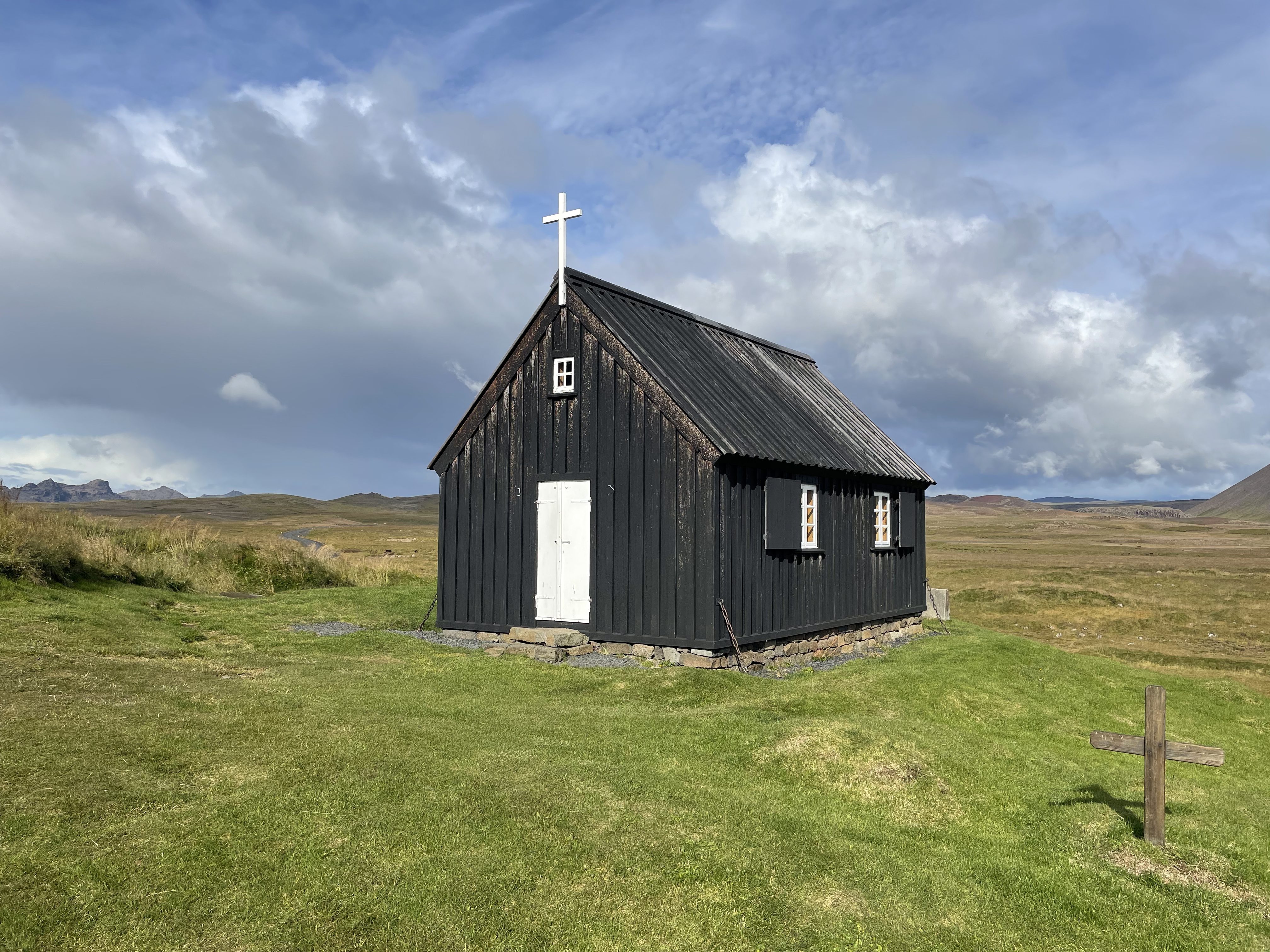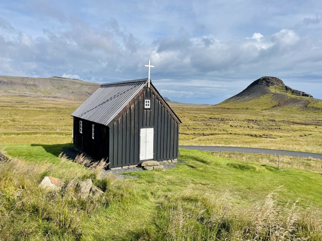 Die kleine Krýsuvíkurkrkja liegt gleich nebenan und gehörte zum gleichnamigen Bauernhof. Nach einem Brand, der sie 2010 völlig zerstörte, wurde sie originalgetreu wiederaufgebaut.